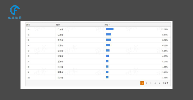大地圖下方言首先是各省份竄貨占比例餅圖,結合大地圖,可大體先判斷哪些省份