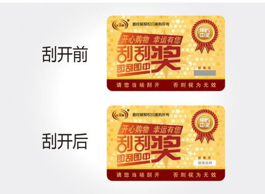 刮獎(jiǎng)卡廣泛應(yīng)用于各類優(yōu)惠有獎(jiǎng)活動(dòng)中,是拓寬產(chǎn)品銷路提高銷量的上佳方法。該類卡核心工藝在于可變數(shù)據(jù)的印刷和刮刮銀區(qū)域的處理,可變數(shù)據(jù)一般以阿拉伯?dāng)?shù)字、英文字母、中文漢字的形式制作;刮刮銀通常以絲印或者貼標(biāo)的方式制作,兩種方式對(duì)數(shù)據(jù)的安全性都有良好的保證。