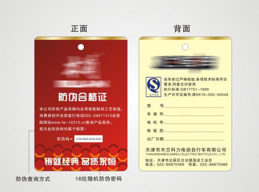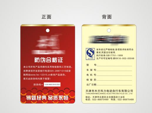 高端防偽吊牌是以特種防偽鈔券紙(安全線紙或水印紙)為基礎(chǔ),結(jié)合安全圖文設(shè)計(jì)、特種印刷(雕刻凹版)、特種油墨(OVI光變油墨)專門制作的高等級(jí)防偽卡。