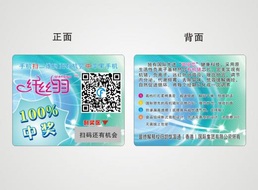 抽獎式刮刮卡包括刮獎卡、刮刮樂卡、促銷抽獎卡、抽獎積分卡此類刮刮卡應用比較廣泛,由其對大型超市及各類產品生產商是非常不錯的營銷方式。此類產品一般是用200-350g的雙銅紙印刷,并用涂層覆蓋刮獎區和驗證碼區。