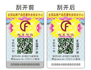 編碼印在涂層的下面,在涂層沒被刮開之前是保密的。(所有標簽編碼都被涂層覆蓋,貼到產品上都是完好無損的,產品賣到消費者手中后才可以被刮開查詢,在這之前是絕對保密的)
