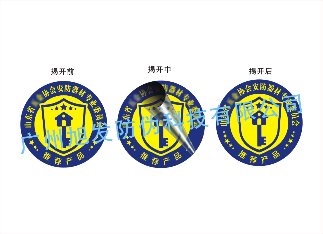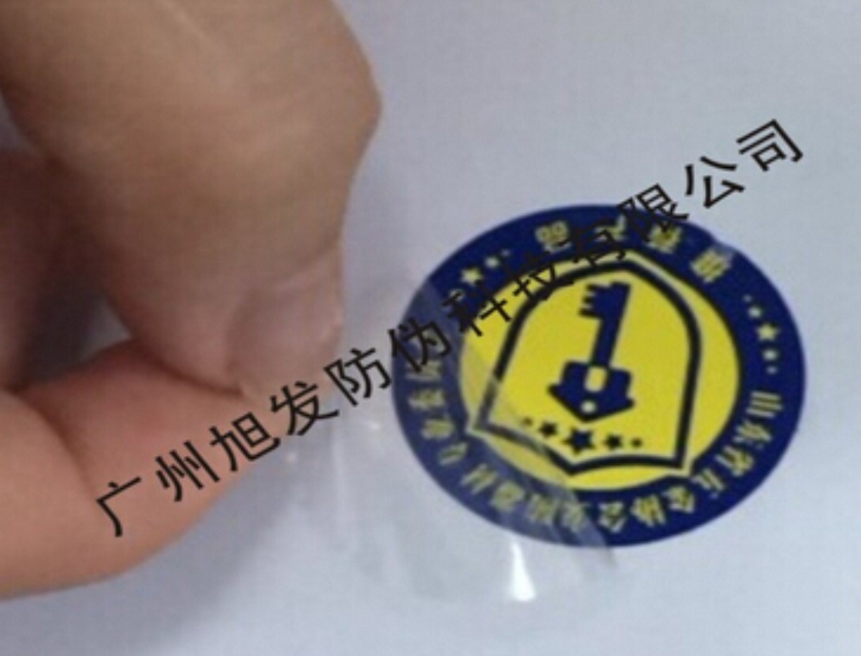 b、標識為防轉移型表底印刷層為雙層載體,當轉移時表底層分離,底印層圖案留在被貼物上,表印層信息被破壞完整性。