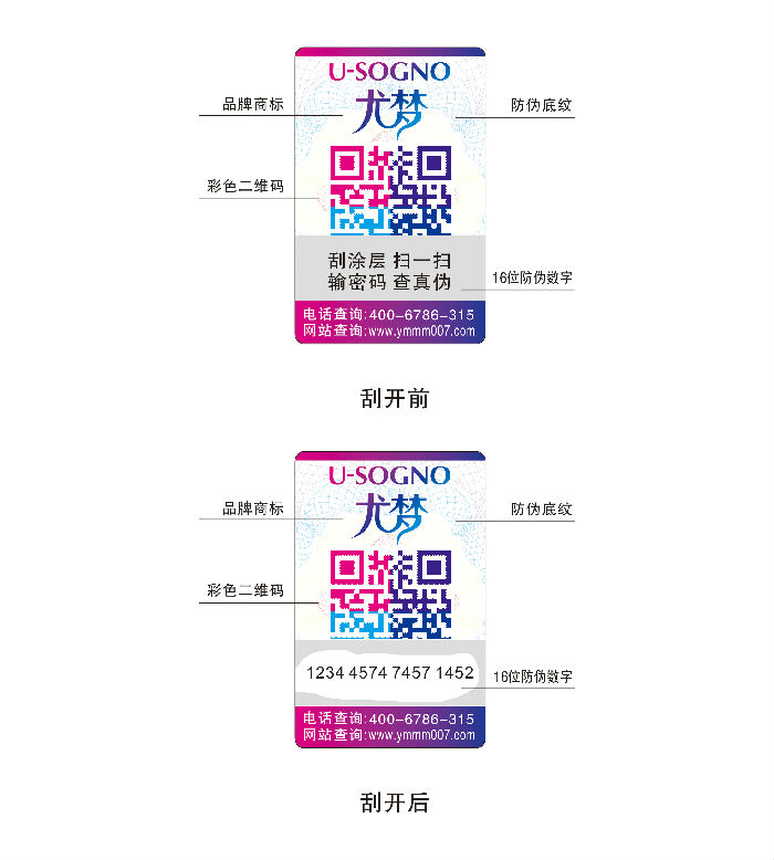彩色二維碼防偽通過旭發公司的核心防偽技術信息化編碼/解碼。為每件產品生成唯一的防偽碼和二維碼,以及具有的顏色(紅、橙、黃、綠、青、蘭、紫、黑等10色),可根據需求設置每一位防偽碼為不同顏色,對應的每一個二維碼為不同顏色。